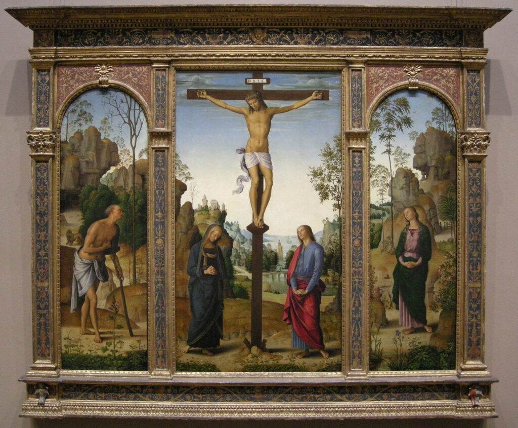 制作年である1496年というと、前述したラファエロが工房に訪れた頃であり、ローマ招聘での大仕事を終え、人気が最高潮に達していた時期の作品です。所蔵はウンブリア国立美術館ですが、ウンブリアといえば、前述した「ウンブリア派」が開花土地でもあります。