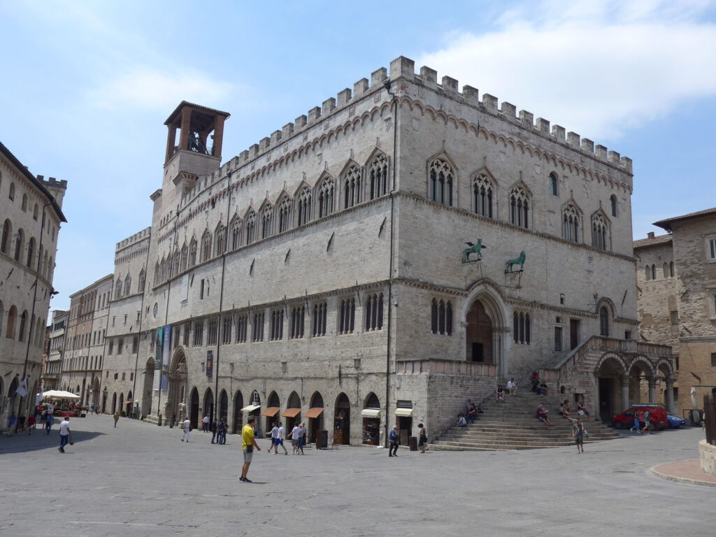 この絵画は、元々聖ベルナルディーノ信徒会(後に正義信徒会と合併)から依頼されたもので、行列用の旗として使われることを意図していました。そのため、作品は強いアイデンティティを象徴する意味も持ち、背景に描かれたペルージャの街並みがそれを際立たせています。当時の街に豊富にあった城壁の門や塔の家々、プリオーリ宮殿、サン・ロレンツォ大聖堂の鐘楼、そして廃墟となったサンタ・マリア・デイ・セルヴィ教会などを細かく見て取ることができるというのです。