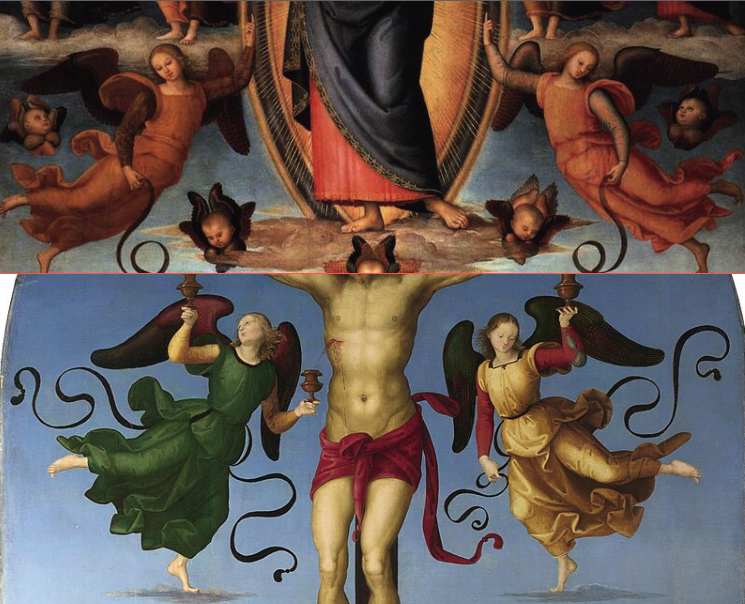 ペルジーノの聖母の横にいる天使たち、そしてラファエロが描いたキリストの隣の天使たち。どこか似ているような。