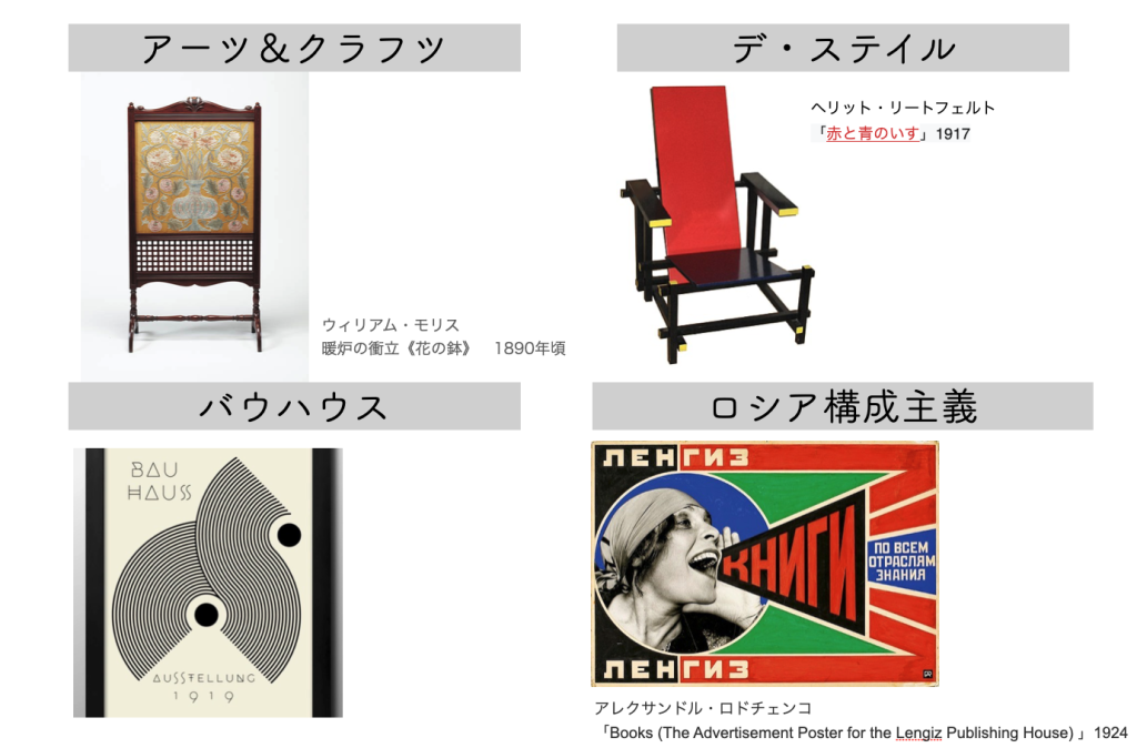そのような中、デザイナーや芸術家系の立場の人々は、別の思いを抱いていました。ここでは4つの芸術運動を列挙し、彼らの奮闘をまとめています。