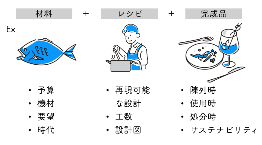 ところが、産業革命以降、この状況が一変します。機械による大量生産が始まり、「誰でも・どこでも・同じものを作る」ためには、設計図が必要不可欠になってきました。つまり、モノの“設計”が先にあり、その通りに“作る”という流れです。