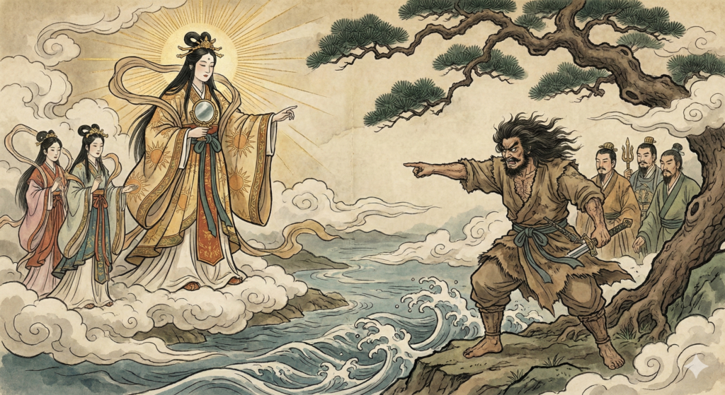 ここで、スサノオの「嵐」の性質が一変する。彼はもう、ただ暴れ回るだけの台風ではない。彼はその強大なエネルギーを、破壊ではなく「守る」ことに向けたのだ。しかも、彼はただ力任せに挑んだわけではない。